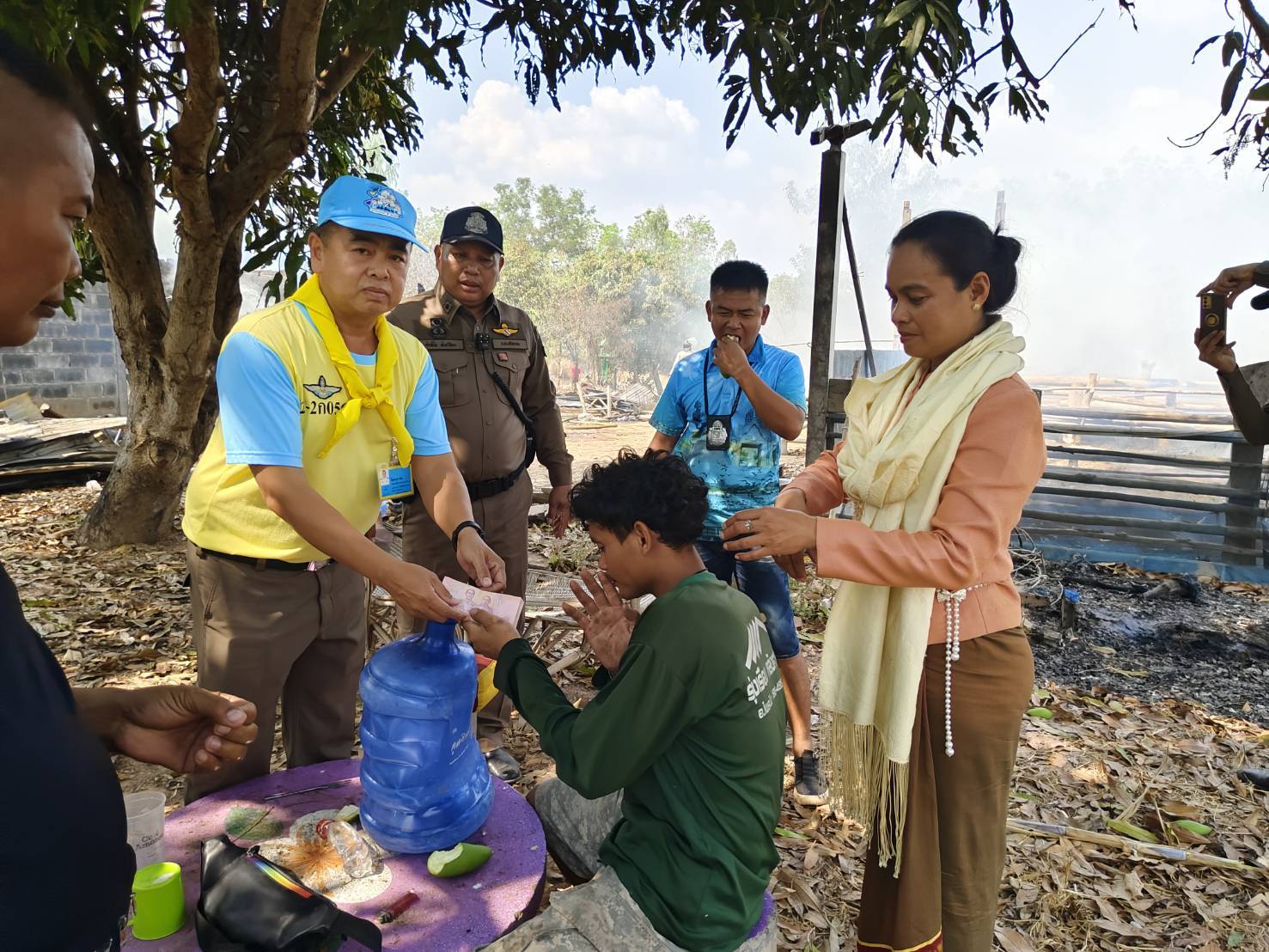วันศุกร์ที่ ๒๓ กพ.๒๕๖๗ พ.ต.ท.ชาญทอง กุยแก้ว รองผู้กำกับการสถานีตำรวจภูธรไพรบึง จิตอาสา ๙๐๔ หลักสูตรพื้นฐานภาค ๒ รุ่น ๒/๖๕ รหัส ๒-๒ก๐๕๖ ร่วมเจ้าหน้าบรรเทาสาธารณภัยเทศบาลตำบลไพรบึง อบต.ไพรบึง อบต.ปราสาท ประชาชนจิตอาสา และข้าราชการตำรวจสังกัด สภ.ไพรบึง ร่วมกันดับเพลิงที่บ้านเลขที่ ๑๔๖ ม.๑๑ ต.ปราสาท อ.ไพรบึง จ.ศรีสะเกษ จนสามารถควบคุมเพลิงไม่ให้ลุกลามไปบริเวณใกล้เคียงและสามารถควบคุมเพลิงได้ รวมทั้งได้มอบปัจจัยช่วยเหลือในเบื้องต้นให้แก่ทุมเมฆ กองพงษ์ ผู้ประสบภัย