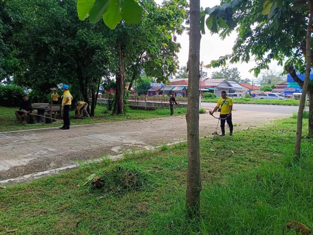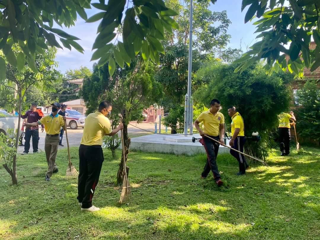 กิจกรรมจิตอาสาพัฒนาบําเพ็ญสาธารณะประโยชน์ปรับภูมิทัศน์ทําความสะอาดปรับปรุงภูมิทัศน์บริเวณโดยรอบสถานีตํารวจภูธรไพรบึง