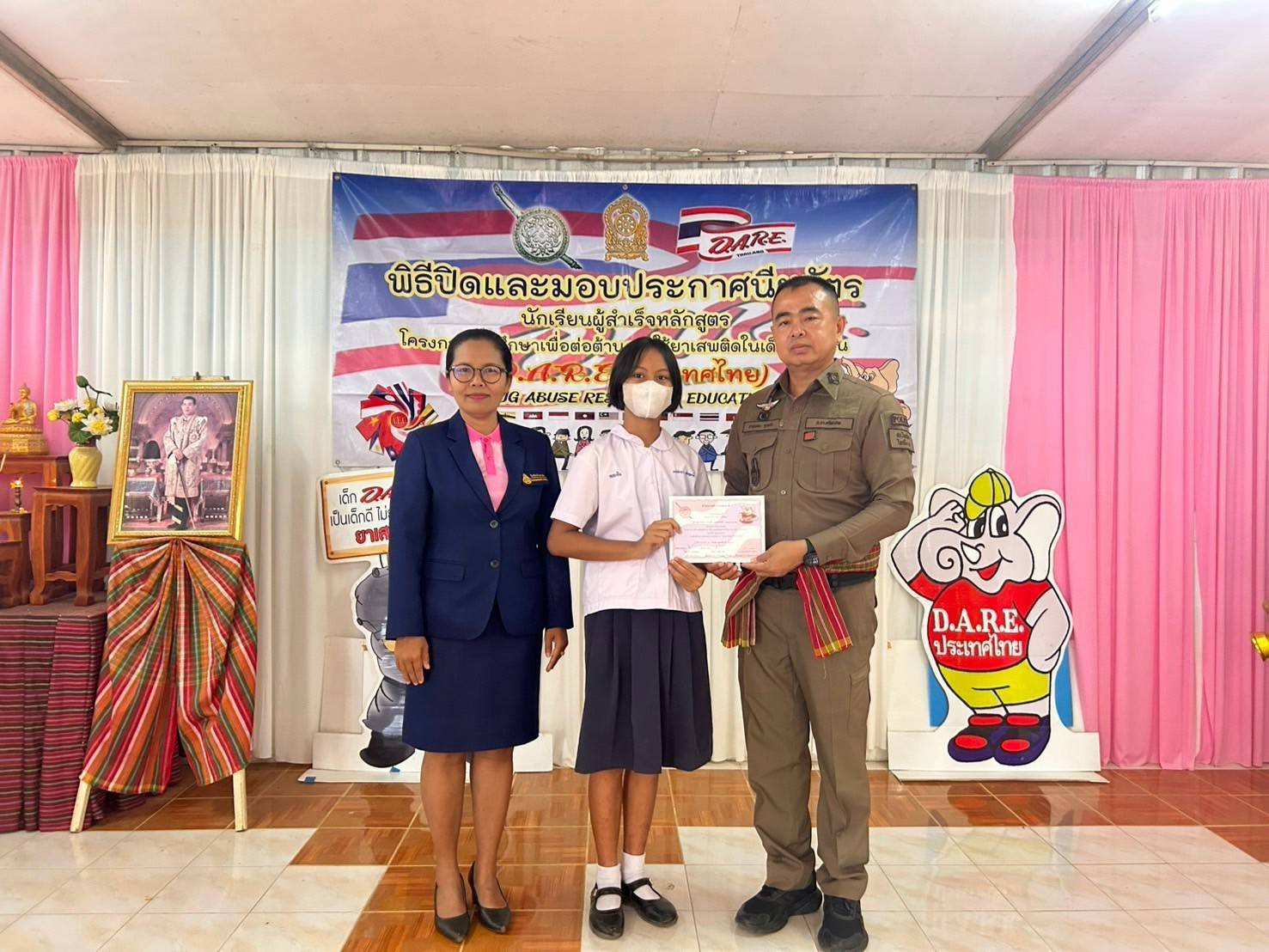 ร่วมงานพิธีปิดและมอบประกาศนียบัตร นักเรียนผู้สำเร็จตามหลักสูตรโครงการการศึกษาเพื่อต่อต้านการใช้ยาเสพติดในเด็กนักเรียน ประจำปีภาคการศึกษาที่ 2 / 2567